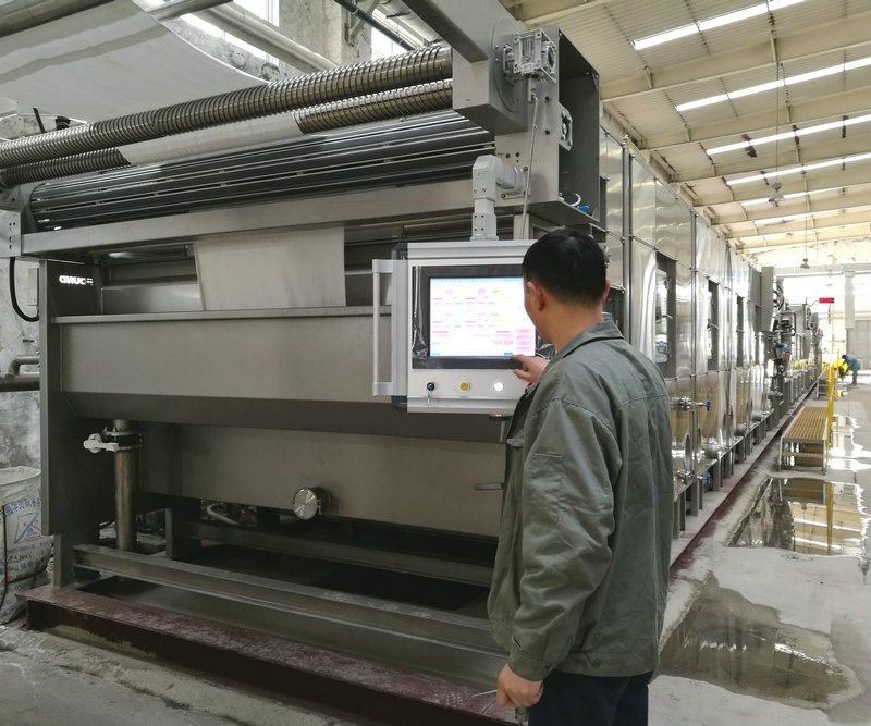 公司實施技改中投資的平幅水洗機和平幅煮漂機經(jīng)前階段緊張的安裝調(diào)試,于3月份正式投入生產(chǎn)。平幅水洗機,是供平幅織物洗滌用,是平幅織物練漂、絲光、染色、印花及樹脂整理等加工設(shè)備的主要單元機械之一。此外,還可應(yīng)用平洗機浸軋化學藥劑,以使織物達到漂白、提高染色牢度、增加花色鮮艷度、增加柔軟手感等目的。