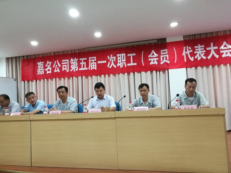會議審議通過了修改的《嘉名公司工會章程》。經過大會民主選舉產生了公司新一屆工會委員會及女職工委員會、經費審查委員會,并經新一屆工會委員會分工,公司第五屆工會委員會由姚金良任主席,委員:戚遠航、俞云松、鐘莉萍、黃海明;女職工委員會由徐群學任主任,委員:吳紅云、王潔;經費審查委員會由雷建明任主任,委員:陳東麗、張東艷。