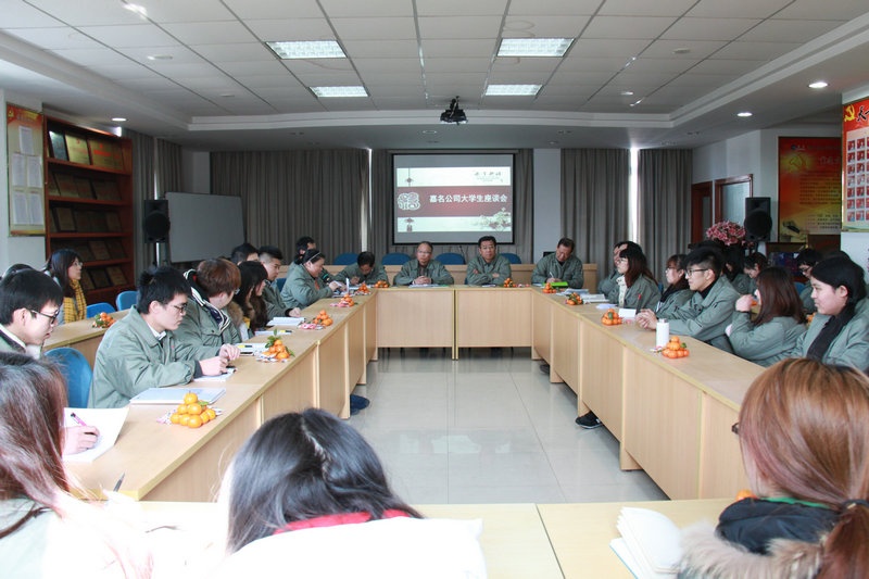 1月14日下午,公司召開了大學生員工迎春座談會,37名近三年進入公司的大學生員工參加。座談會由人力資源部經理戚遠航主持,公司領導莫總和莫榮明、姚金良、莫東海,黨建工作指導員吳紀聯出席,老大學生員工施道妃、楊廣權、繆慧麗、蔣亞群應邀參加。