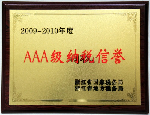 2011年12月,浙江嘉名控股有限公司、浙江嘉名染整有限公司被分別被浙江省國家稅務(wù)局、浙江省地方稅務(wù)局評為2009—2010年度AAA級納說信譽(yù)企業(yè)。